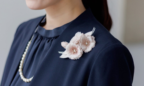 コサージュは、もう少しフォーマル感を上げたいというときにぴったりのアクセサリー。
