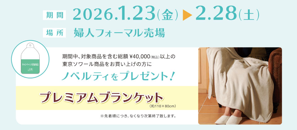 期間中、対象商品を含む、総額40,000円(税込)以上の東京ソワール商品をお買い上げの方に、